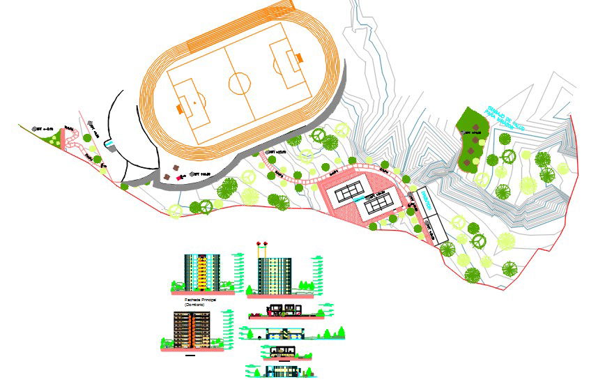 Here is the autocad dwg of multi family building,civil plan of the building,proposed layout,sectional elevation of the building,design elevation of the building.