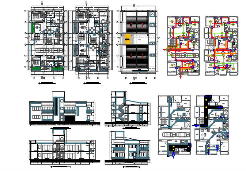 Here is the autocad dwg of Multi family apartment america,consists of civil plan,proposed layout plan,furniture layout plan,sectional elevation of the building,design elevation of the building.