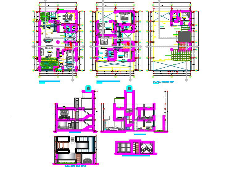 Here is the autocad dwg of single family house,civil plan of the house,proposed layout plan,design front elevation of the house,sectional elevation through staircases.