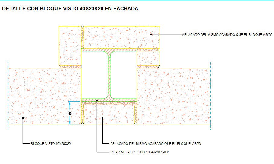 Here is the autocad dwg of connection wall of concrete blocks with cover metallic pillar with detail sectional elevation detail of wall.