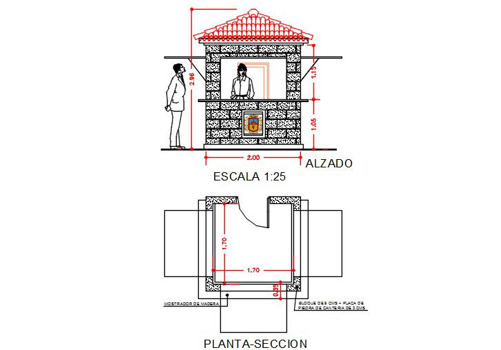 Here is the autocad dwg of tourism information cabin,detail plan of the cabin and the front elevation the tourism information cabin.