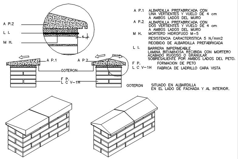 Here is the autocad dwg of sloping details,perspective view of slopes and walls,plan and elevation with proper sloping details.Slopes are generally given on terraces and hut shape roofs.