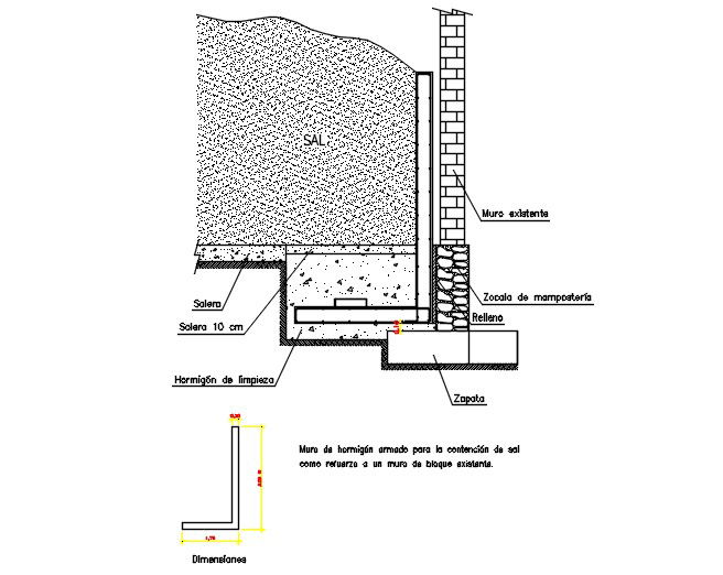 Here is the autocad dwg of wall contention of salt,detail sectional elevation of the wall.