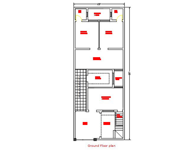 Here is the autocad dwg of house plan,civil plan of ground floor,red color blocks denotes columns in the autocad dwg.