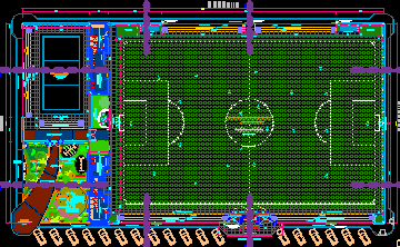 This Sport Center Plan CAD Drawing showcases a comprehensive 2D layout design featuring a detailed master plan for sports infrastructure. The DWG file includes the complete field setup, seating arrangements, walking paths, and auxiliary structures such as rest areas and access routes. The drawing offers a rendered top view that helps visualize proportions and spatial distribution, making it ideal for designing football, cricket, or multi-sport complexes. Each element is carefully detailed, ensuring architectural precision and practical implementation.