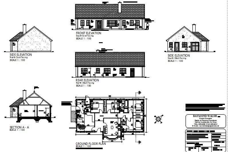 Here is the autocad dwg of modified house design consists of ground floor plan,front view and rear view elevation,left side and right side elevation,section of the house.
