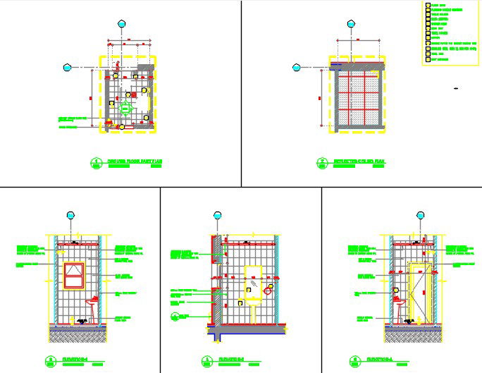 Here is the autocad dwg of plan of toilet,folded elevations of toilet,4 side walls elevation with WC,wash basin.