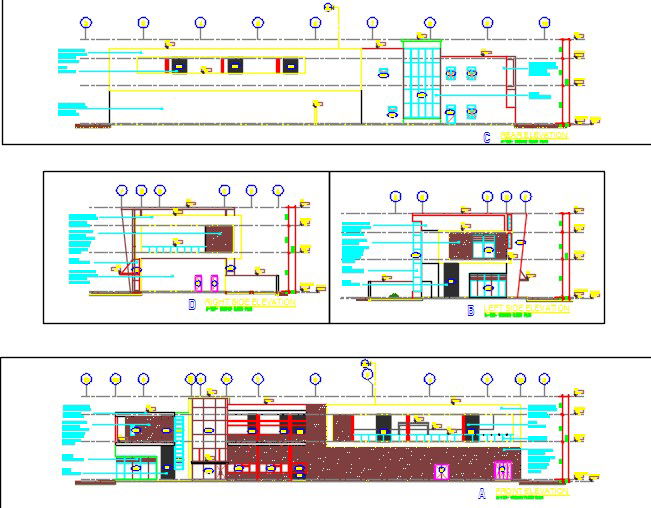 Here is the autocad dwg of club house elevations consists of sectional elevations of the club house,front view elevation.