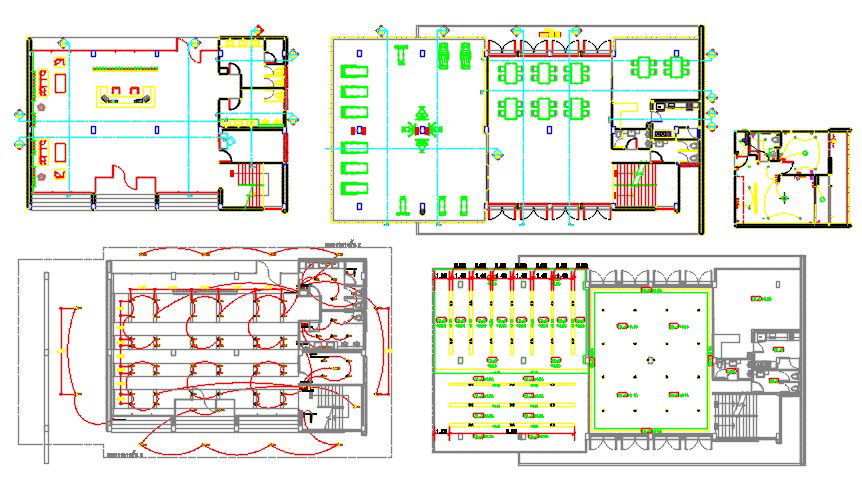 Here is the autocad dwg of club house details consists of false ceiling layout,electrical plan,furniture layout ,floor plan.
