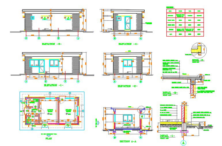 Here is the autocad dwg of earth gard house consists of plan of guard house,elevations of house,front elevation,read view,left side and right side elevation,sections and sectional detail.