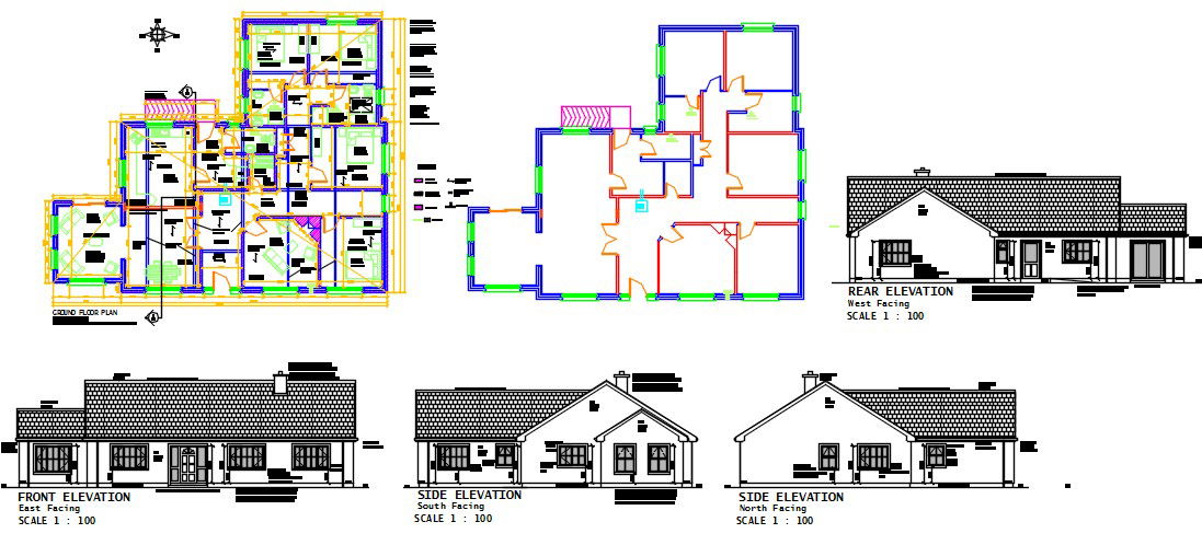 Here is the autocad dwg of house drawings,consists of civil site plan,proposed layout plan,furniture layout plan,side elevation of house ,front and rear view elevation.