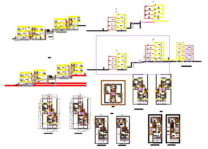 Here is the autocad dwg of row house design,drawing consists of floor plan,civil plan,proposed layout plan,furniture layout plan,front elevations of row house.