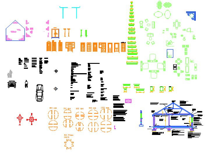 Here is the autocad dwg of template house,drawing consists of cad blocks of bed,sofas,dining table,cars,plan of doors and windows etc.