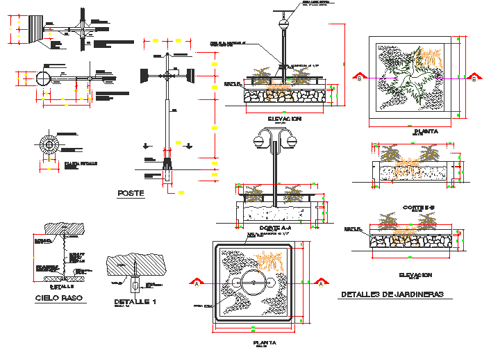 Here the autocad drawing of lighting lamps with plans, sections from different levels with all the required specification of elements of materials and surrounding details.