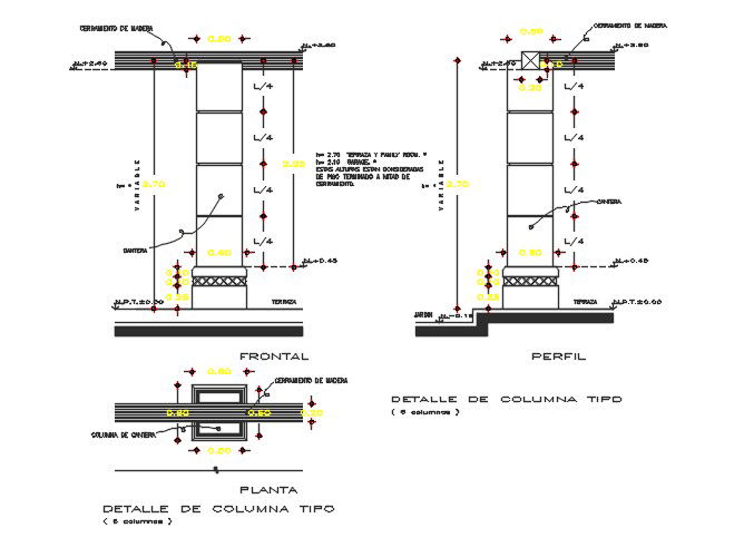 Here is the autocad dwg of quarry column,detail plan of column,section of column,front elevation and side elevation of quarry column.