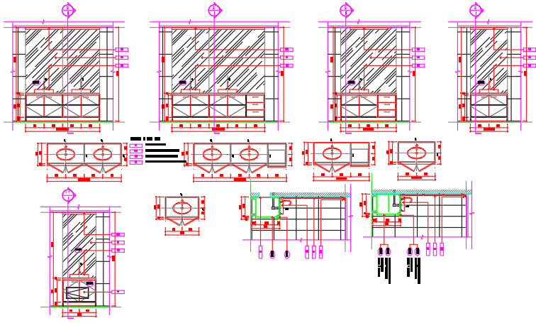 Here is an autocad dwg file for Apartment vanity counter details . in this file , we have plan and elevational drawings of the vanity counter in a kitchen's apartment .