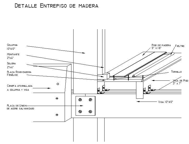 This autocad dwg file consists of Details of wooden mezzanine along with detailed side elevation.