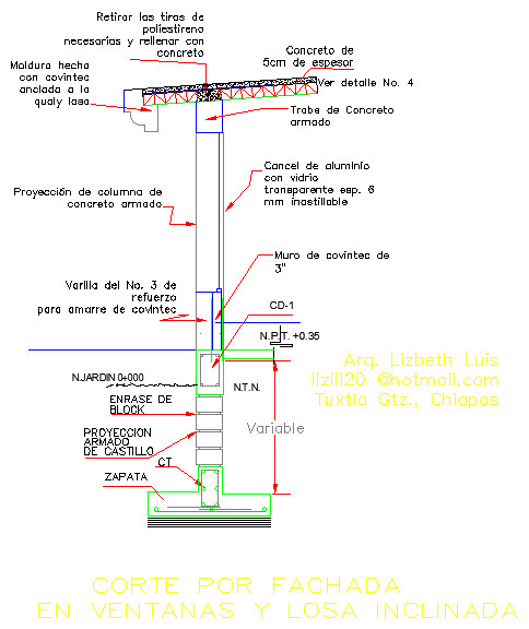 This autocad dwg file consists of Details of section by facade windows and inclined flagstone along with detailed front elevation.