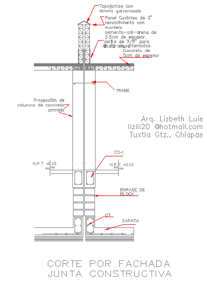 Details of section by facade in constructive joint
