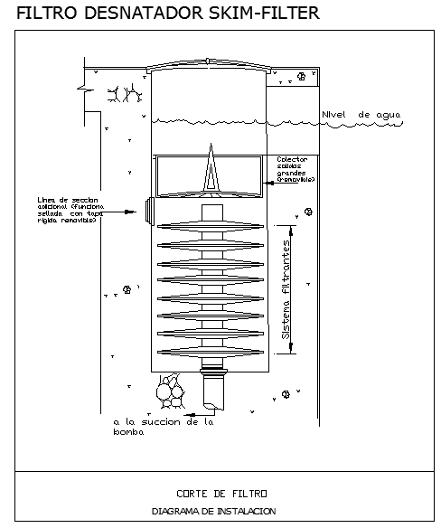 This autocad dwg file consists of Details of a skim filter along with detailed front elevation.