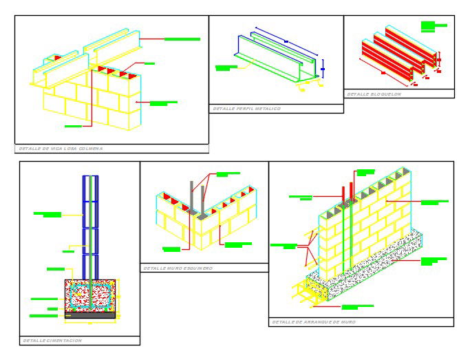 Here is the autocad dwg of detail of wall of blocks,detail plan,isometric view of walls,elevation of walls.
