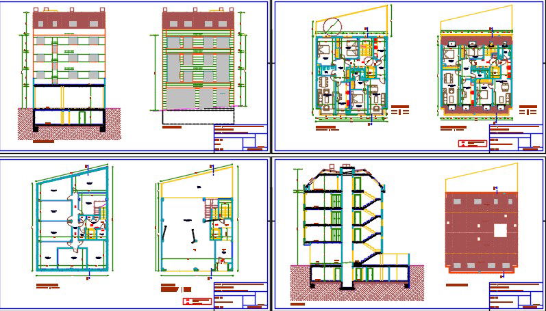 Here is the autocad dwg of housings,drawing consists of proposed layouts,furniture layout plan,front elevations of house,side elevation and rear view elevation,sections of house through staircases.