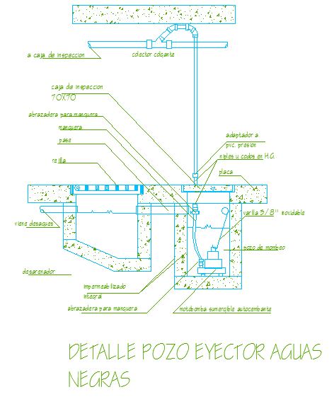 This autocad dwg file consists of Details of a sewage with ejector along with detailed side elevation.