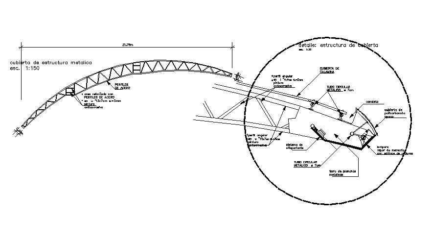 Here in this Metallic roof drawing and design with detailed side elevation and installation in this autocad dwg file.