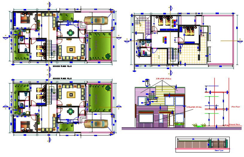 Here is the autocad dwg of house project,proposed ground floor plan and first floor plan,presentation plan of the house,elevation o the house,flooring plan of the house