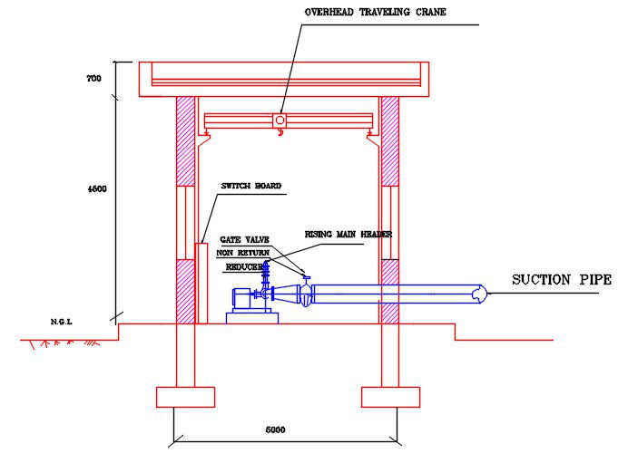 Here is the autocad dwg of pumping house,section of pumping pipe and suction pipe detail.
