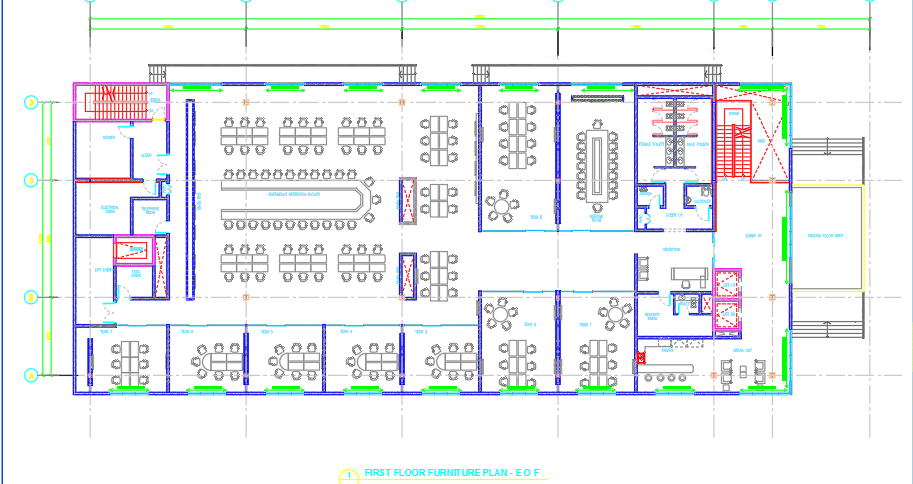In this autocad dwg file , there are the detailed drawings of Building first floor furniture details . It shows the dimensions, architectural features .