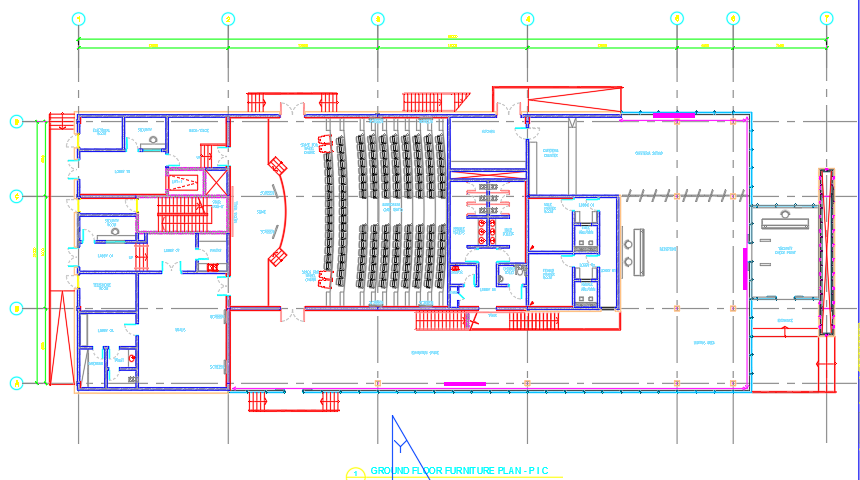 here in this autocad dwg file there are furniture detailed drawings for PIC building ground floor details . furniture layout, measurements, interior space, combination.