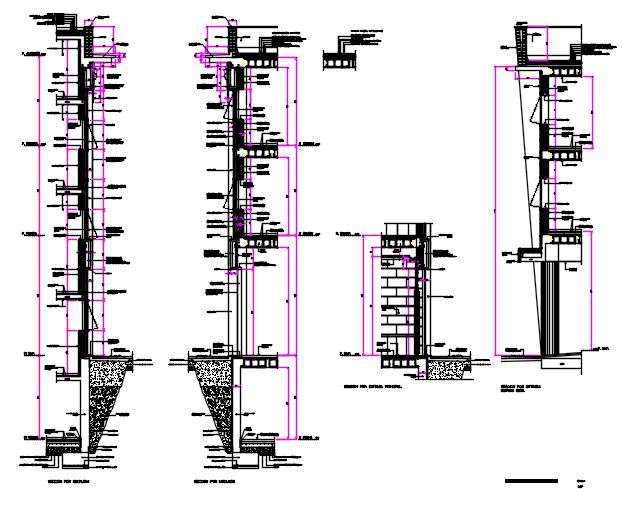 Here is the autocad dwg of constructive sections facades with panels,detail section of facade of building,elevation of facade.