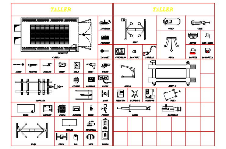 Here is the autocad dwg of block of shop tools,different tools 2d autocad dwg .