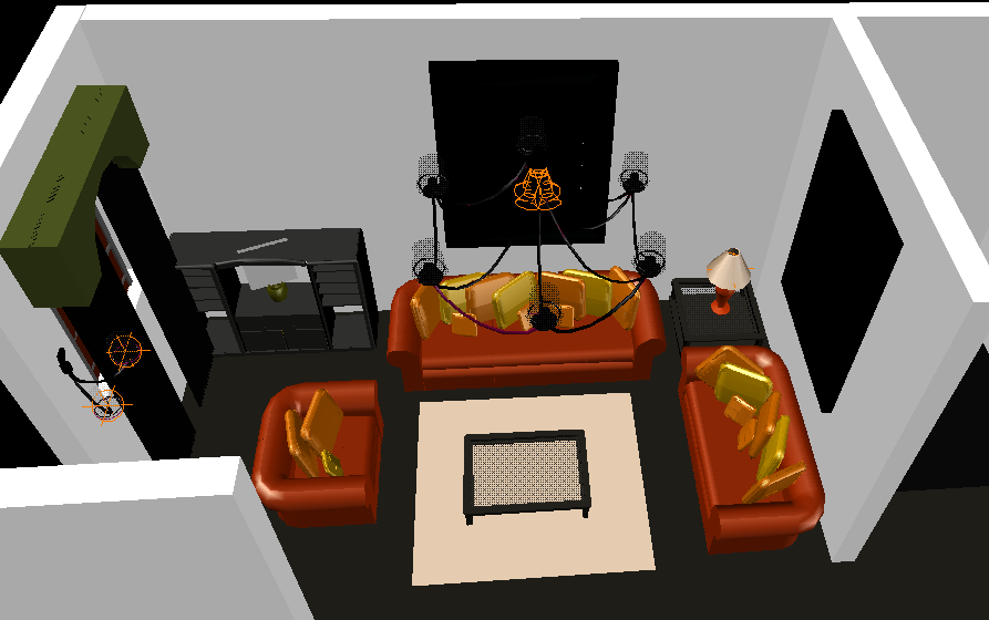 3D Living Room CAD Drawing DWG with Realistic Interior Layout