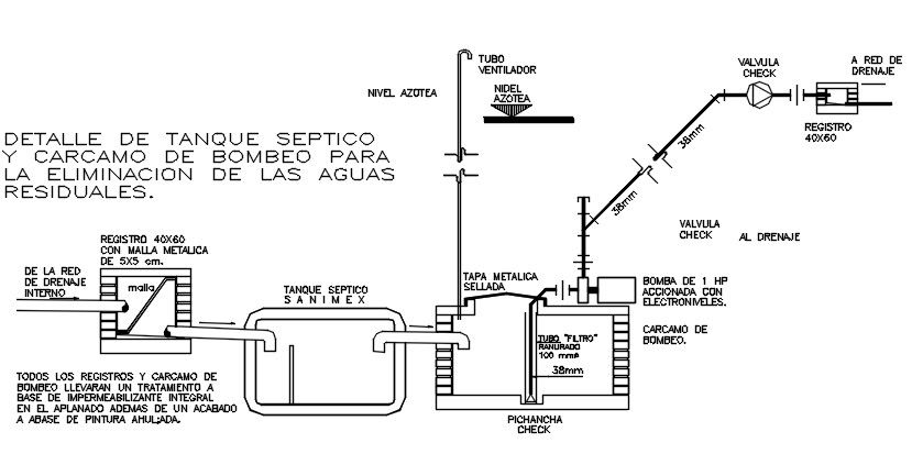 Here is the autocad dwg of septic tank,proper detail mechanism of plumbing lines,elevation of process of septic tank.