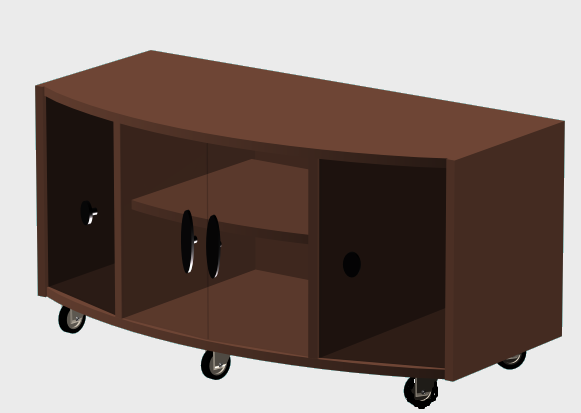 3D TV Table CAD Drawing DWG with Storage Compartments and Wheels