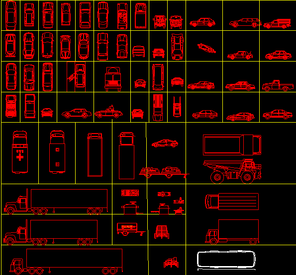 This AutoCAD DWG file features an extensive collection of 2D vehicle CAD blocks, offering a wide variety of designs suitable for architectural, civil, and transportation layouts. The file includes precise top, side, and front views of multiple vehicles such as cars, trucks, buses, ambulances, and dumpers, ideal for detailed architectural plans or traffic management drawings. These drawings are organized in a grid format for easy selection and editing, allowing architects and engineers to integrate them seamlessly into their designs.