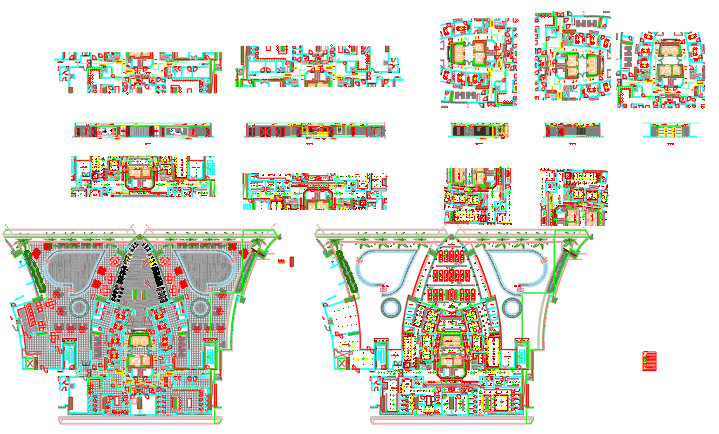 Here is an autocad dwg file for details of the furniture layout plan drawing and ceiling layout section drawings layout for a club house .