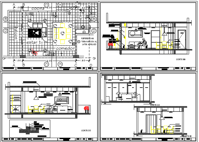 Here is an autocad dwg file for the details of a living room. in this autocad file there is a plan layout drawing of the living area and the elevation layout drawing plans with proper detailing.
