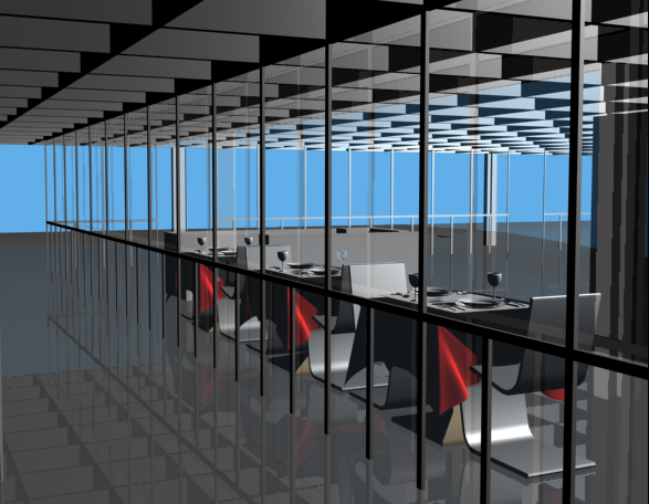 This 3D Modern Restaurant Interior CAD plan in DWG format presents a refined and contemporary dining space created for professional architectural and interior design applications. The model highlights a beautifully designed dining arrangement with sleek tables, modern chairs, and elegant glass partitions. The reflective flooring and checkered ceiling layout enhance the sense of spaciousness, giving the restaurant a high-end aesthetic. The CAD file provides both visual accuracy and technical depth, making it an excellent choice for realistic design presentations.