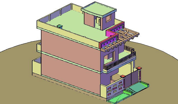 Here is the autocad dwg of merla 3d house,3d view house,rendered autocad file of house giving realistic look of house.