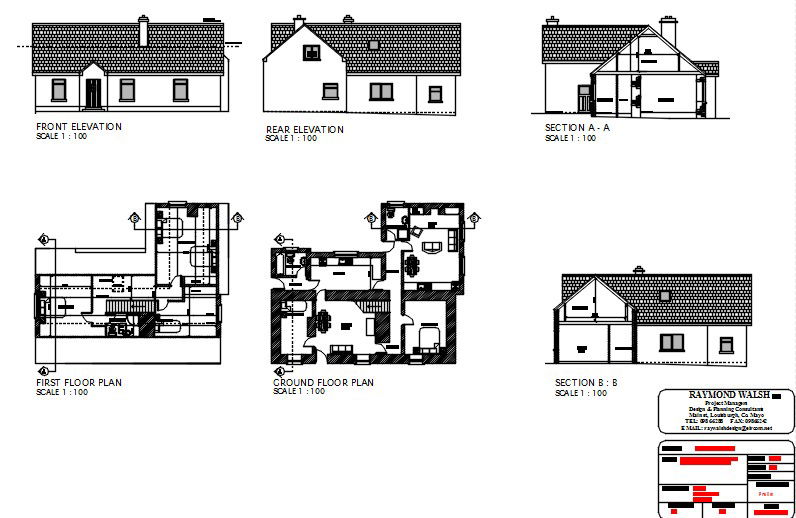 Here is the autocad dwg of original house 2,drawing includes ground floor plan,first floor plan,sections of house,front elevation of house,side elevations and rear view elevation of house.