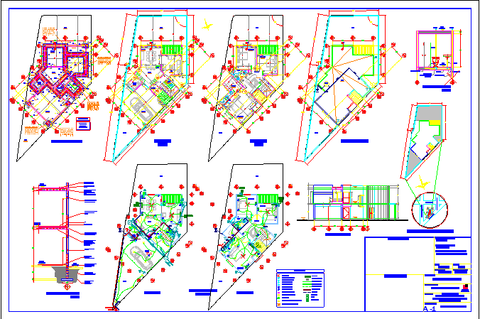 Here the detail drawing of a house with floor plans, sections with furniture layout, electrical layout plan, surrounding details with parking layout, typical sections, etc in autocad drawing.
