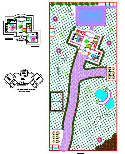 Here is the autocad dwg of farm house ,civil plan of the farm house,presentation plan of the farm house,proposed layout plan,landscape plan,interior layout.