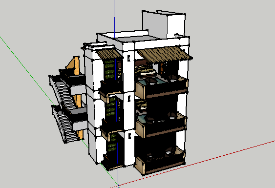 Here the 3D model of rest rooms showing plans with furniture, roofing style, staircase type, balcony, in sketchup.