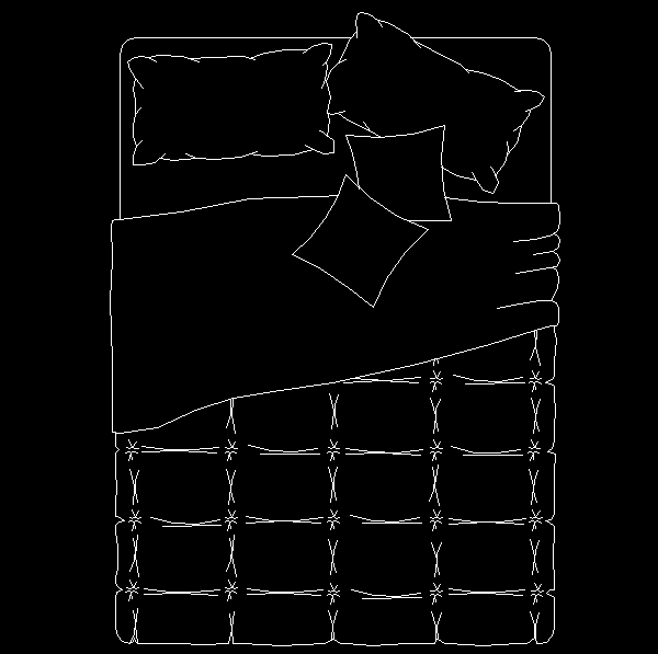 This Double Bed CAD drawing in DWG format presents a well-detailed top view layout, ideal for residential and interior design projects. The drawing includes a double bed with pillows, blanket folds, and mattress detailing, all drafted with precision and proportion. The design effectively captures realistic bedding textures and symmetry, helping interior designers visualize accurate bedroom layouts.
