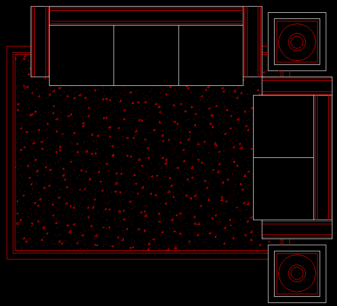 This Living Room CAD drawing in DWG format displays a detailed 2D furniture layout plan ideal for residential and commercial interior projects. The drawing includes a three-seater sofa, two single couches, coffee tables, and a decorative rug, arranged symmetrically to optimize floor space and functionality. Each element in the plan is proportionally scaled, making it suitable for architects and interior designers focusing on space management and aesthetics.