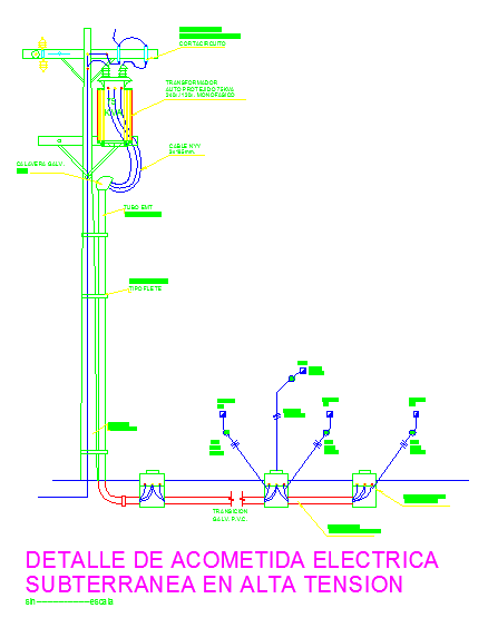 Here is an autocad dwg file for the electrical details. in this file there are details of electric service connection of high tension with elevation and proper tagging.