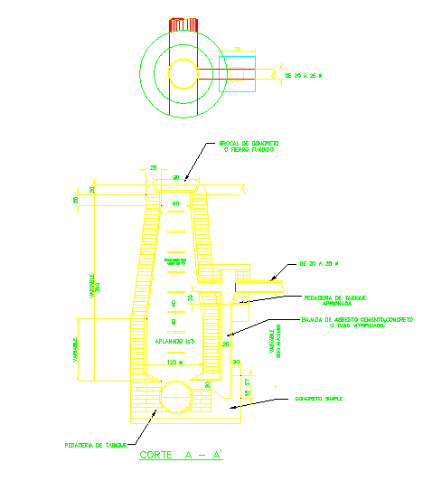 Here is an autocad dwg file for details of drainage in man hole wells. There is a plan layout and elevation layout drawing with proper detailing.